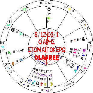 Στην αστρολογια(για πιο αναλυτικές προβλεψεις καλέστε: 9011903222) ο Άρης στον Αιγόκερω από 8/12–16/1 με οργανωμένες κινήσεις και αυξημένη ενεργητικότητα δίχως όμως ίχνος συναισθηματισμού. Ο πλανήτης Άρης που σύμφωνα με την αστρολογια σχετίζεται με την ενεργητικότητα, τη δράση, το σεξ και τις πρωτοβουλίες, στο ζώδιο του Αιγόκερω βγάζει τη μεγαλύτερη δυναμική του και μας προκαλεί να κάνουμε δυναμικές ενέργειες, αλλά όχι δίχως λογική και σωστό υπολογισμό.